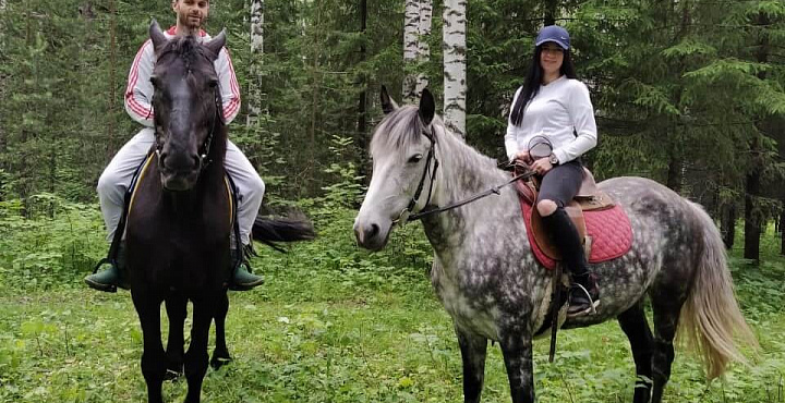Если вы являетесь любителем активного отдыха на свежем воздухе, то вам обязательно понравится конная прогулка двоих #в Нижнем Тагиле#. Отправляйтесь на отдых со своей второй половинкой. Такой отдых приятен как летом, так и зимой. В жаркий знойный день нет ничего лучше, чем отправиться на природу, чтобы покататься на лошадях и вдохнуть свежего чистого воздуха. В зимнее время верховая езда привлекает не меньше.